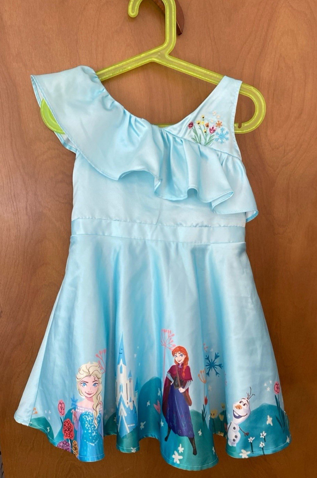 Disney Frozen Dress Girls Small Blue Anna Elsa Olaf Floral Print Costume Size 4