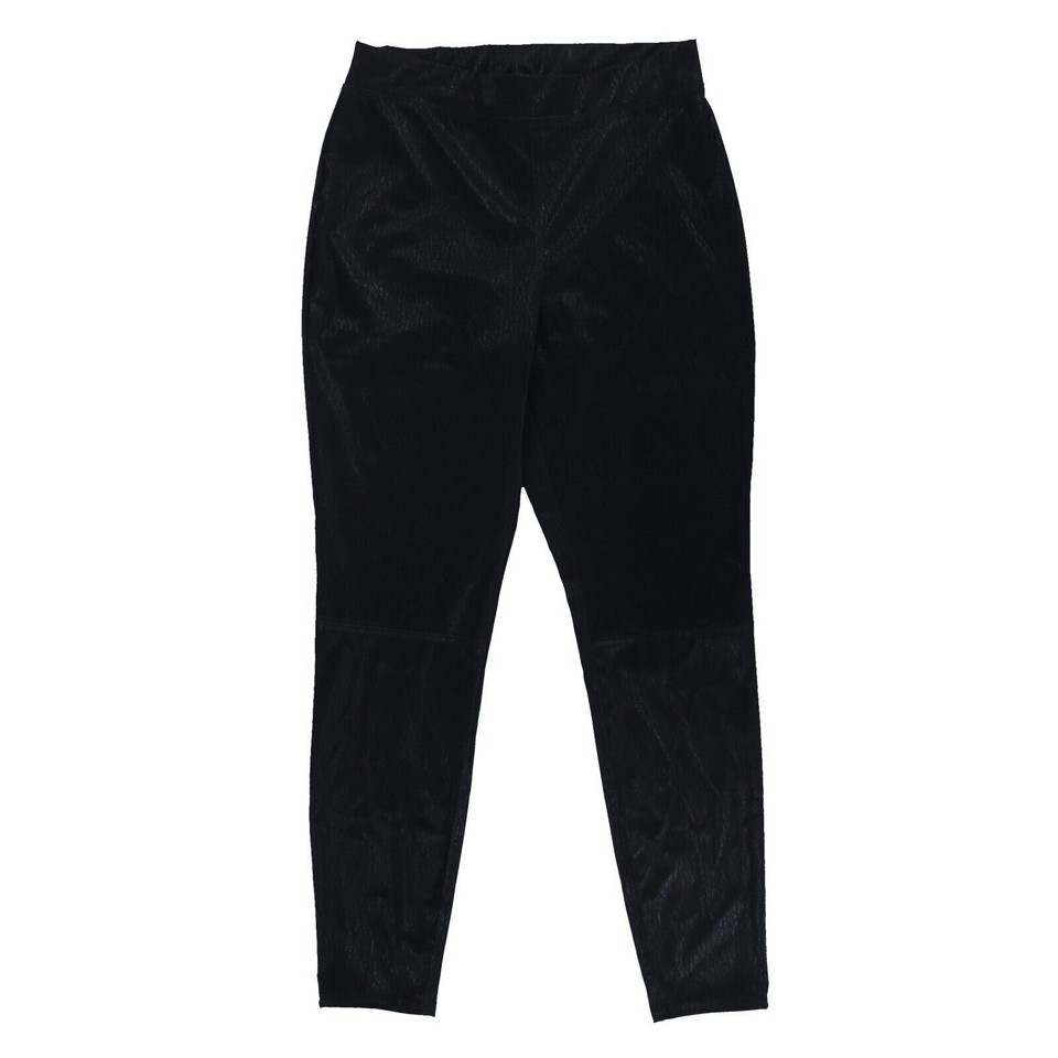 Hue Women's Distressed Leggings Pull On Polyester Bottoms Matte Black Large New