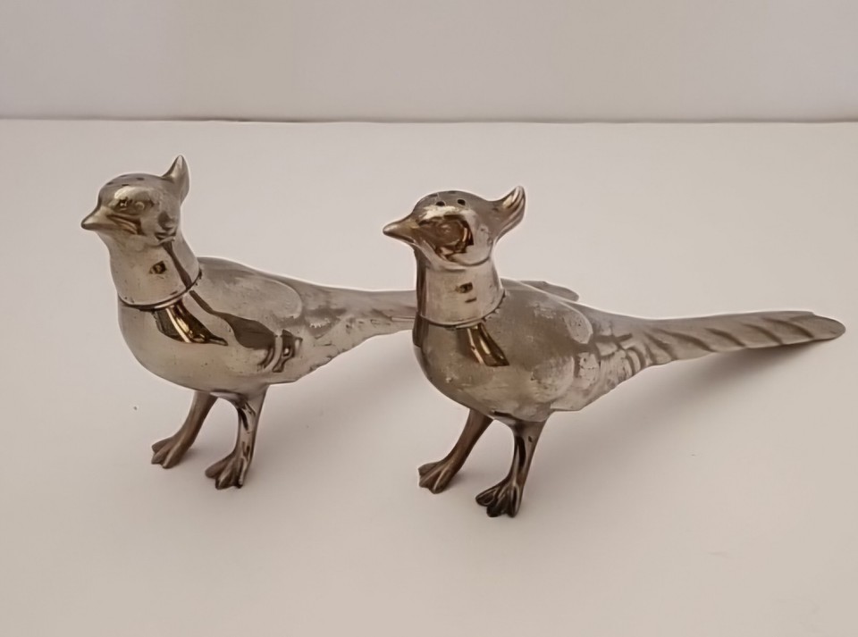 Vintage Silver plate pheasant salt and pepper shakers birds collectible 7.5" X 4