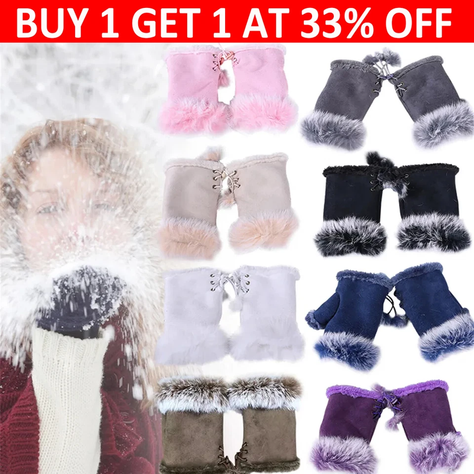 - Faux Fur Winter Fingerless Gloves & Mittens for Women,