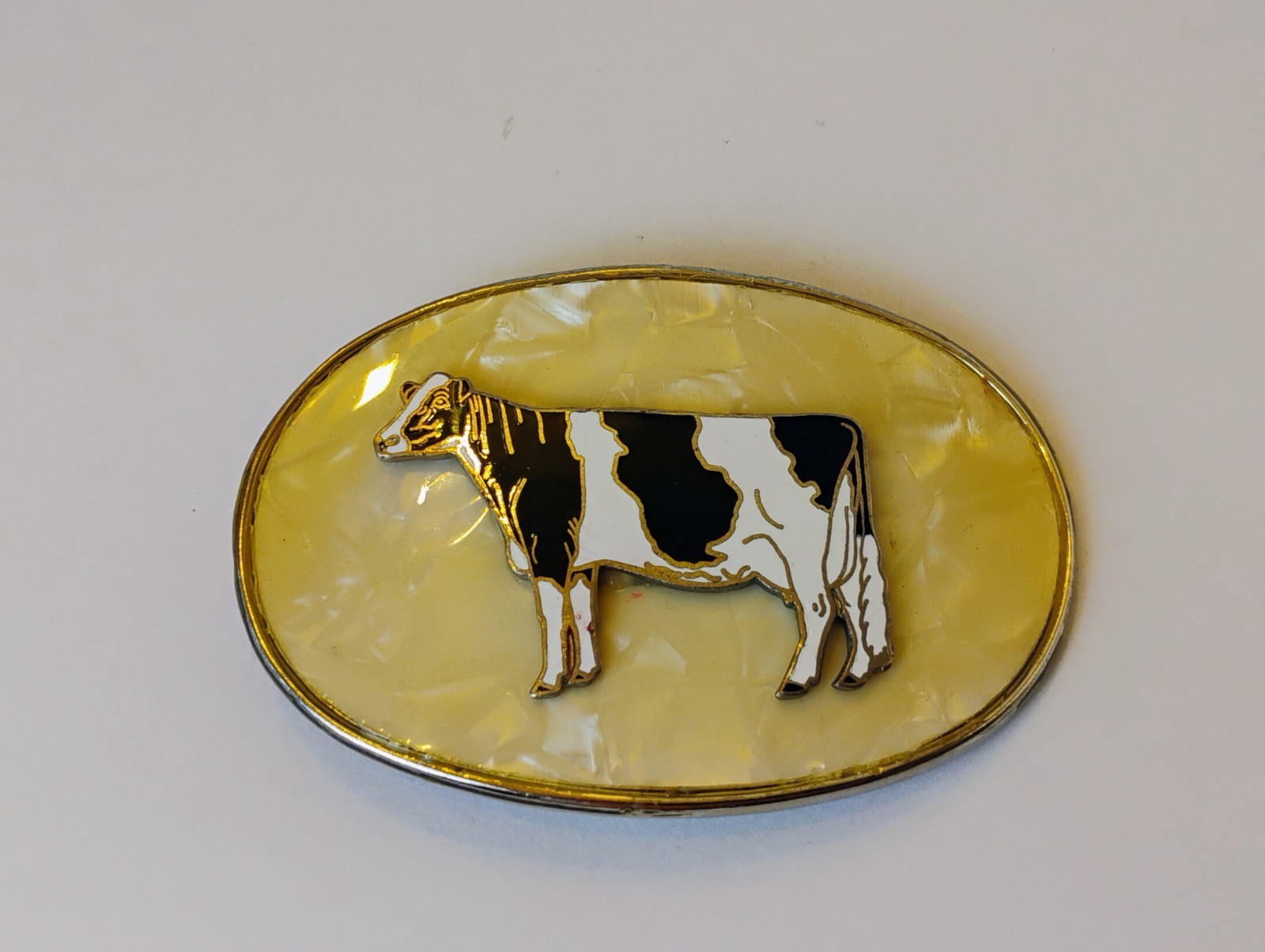 Vintage Dairy Cow Holstein Belt Buckle Mother Of Pearl