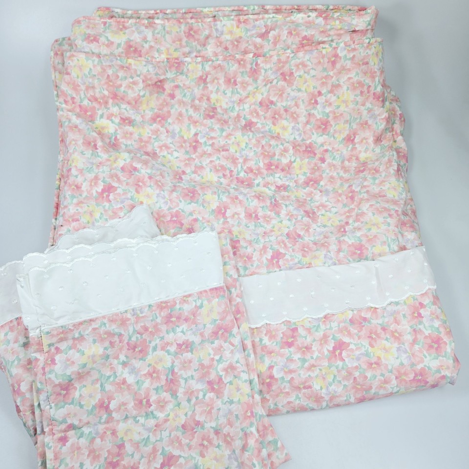 Eileen West Stevens Twin Pink Floral Ruffle Duvet Cover Pillowcases Cottage
