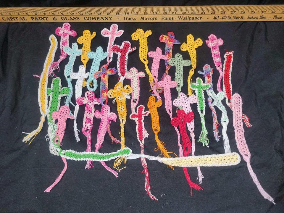Book Mark Crosses And Strips Handmade Crochet Multicolor Gift Church Reading 30+
