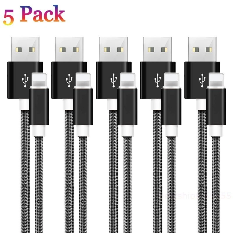 5 PACK 10 FT Heavy Duty Braided USB Charger Cable Cord For iPhone 13 12 11 X 8 7