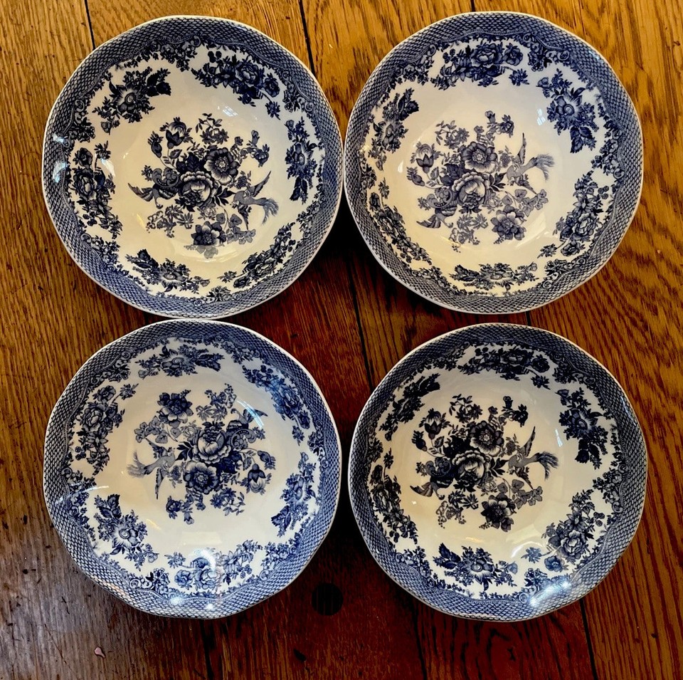 ASIATIC PHEASANT BLUE by JOHNSON BROTHERS Set of 4 Cereal or Soup Bowls 6.5”