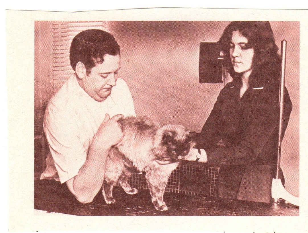 Cat Print--Photo of Veterinarian at Work—Book Cutout, B&W