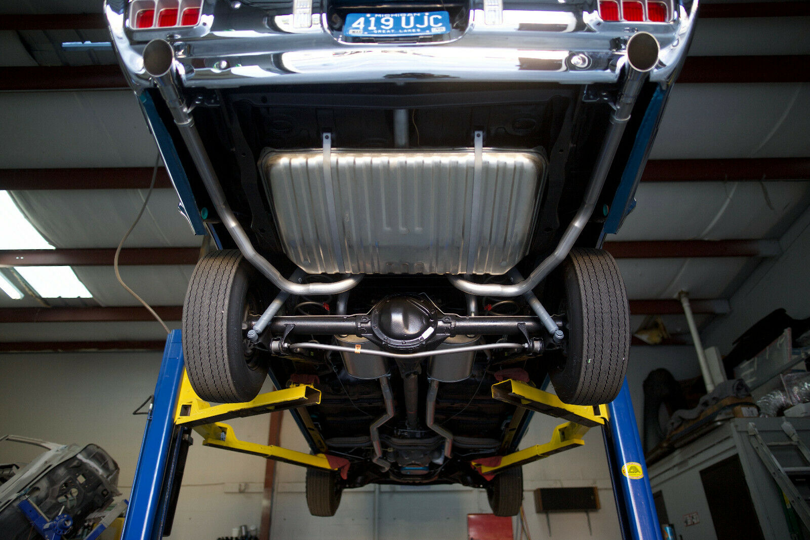 The work also included a new interior using components from Legendary Interiors, based in Newark, NY. There’s a restored dashboard and instrumentation, completely rebuilt suspension, brake and exhaust systems, and new Goodyear Polyglass tires.