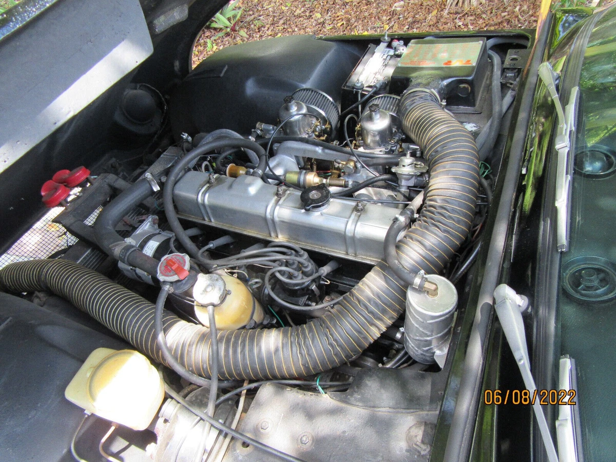 A tidy engine compartment houses the original 2.5-liter twin-carb Triumph six-cylinder engine. The engine was rated for 106 horsepower in 1973. That power fed through a four-speed manual transmission is sufficient to provide lively acceleration and plenty of smiles in such a lightweight car.
