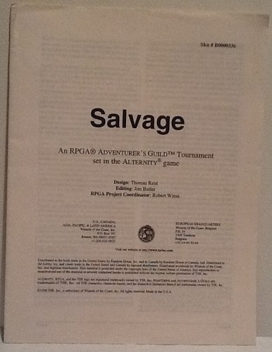 Alternity RPG Salvage RPGA Adventurer's Guild Module EXCELLENT RARE TSR Retailer