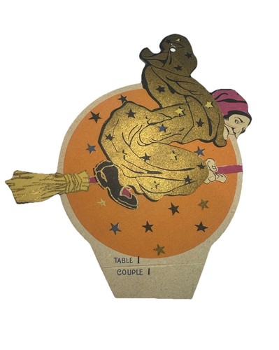 Unbelievably Scarce 1920s-1930s Halloween Witch On Broom Party Place card (RARE)