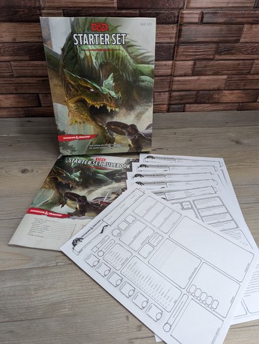 D & D Dungeons and Dragons Starter Set Box Rulebook Character Sheet & 5 Pre-Gen