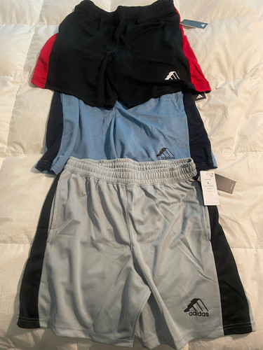 3 pair - NWT - MENS ADIDAS SHORTS MESH GYM JOGGER TRACK - L -Silver, Blue, Black