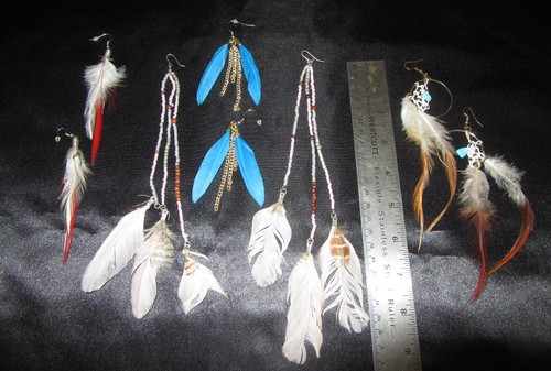 VTG LOT OF 4 PAIRS FEATHER EARRINGS - DREAM CATCHER, SOUTHWESTERN STYLE