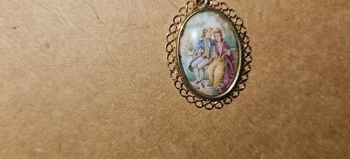 VINTAGE LIMOGES FRANCE HAND PAINTED PORCELAIN VICTORIAN COUPLE CAMEO PENDANT