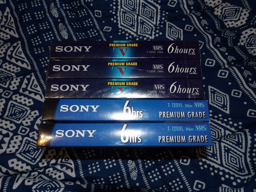 Lot Of 5 Sony T-120 Premium Grade Blank VHS Tapes Unopened See Description