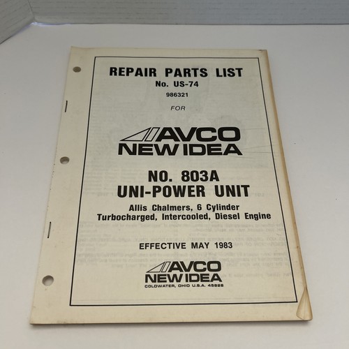 Avco New Idea No. US-74 986321 Uni-Power Unit Allis Chalmers 6 Cyl Parts List