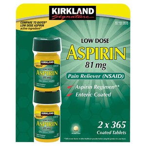 - Kirkland Signature Low Dose Aspirin 81 mg 365 tablets Enteric CoatedOpens in a new window or tabBrand New$5.98Save up to 10% when you buy moremenehune_deals (291) 100%+$30.30 shippingfrom United States