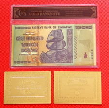 $1.40Time left16h 27m left0 bidsFrom Greece+$1.90 shippingWR Zimbabwe 100 Trillion Dollars 2008 Bank Notes 24K GOLD Foil Gifts /w COA PACK