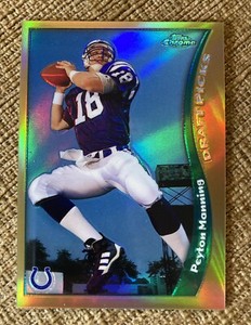 - Peyton Manning 1998 Topps Chrome Draft Pick Rookie Card #165 Free ShippingOpens in a new window or tabPre-OwnedEUR 71.17mikes-customs-and-diecast-collectibles (5,280) 100%0 bids · Time left4d 19h left (Tue, 02:57 PM)+EUR 17.67 shippingfrom United States