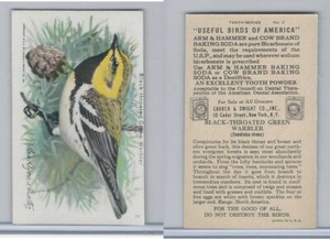 - J9-6, Church & Dwight, Useful Birds America 10th Ser., 1925, #2 BT Green WarblerOpens in a new window or tabEUR 2.72openbinders (66,281) 99.9%Buy It Now+EUR 3.63 shippingfrom United States