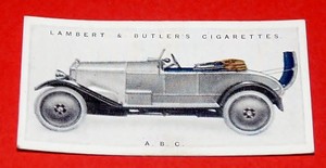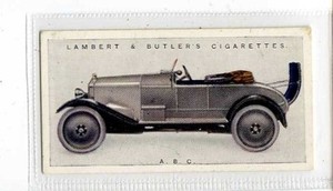 - LAMBERT & BUTLER SCARCE 1922 SERIES 1 CIGARETTE CARD MOTOR CARS No 10 A.B.C.Opens in a new window or tabPre-OwnedEUR 1.26collectorcards7 (698) 100%Buy It Now+EUR 3.45 shippingfrom United Kingdom