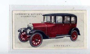 - LAMBERT BUTLER'S MOTOR CARS CARD 1922 #4 CROSSLEY AUTOMOBILE CIGARETTESOpens in a new window or tabPre-OwnedEUR 2.80Top Rated SellerTop Rated SellerBuy It Nowolivier9862 (25,394) 100%+EUR 6.00 shippingfrom France