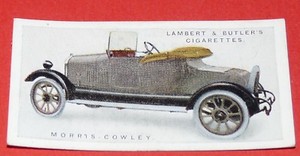 - LAMBERT BUTLER'S MOTOR CARS CARD 1922 #8 MORRIS COWLEY AUTOMOBILE CIGARETTESOpens in a new window or tabPre-OwnedEUR 2.80Top Rated SellerTop Rated SellerBuy It Nowolivier9862 (25,394) 100%+EUR 6.00 shippingfrom France