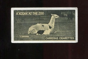 - Tobacco Card, Carreras, KODAK AT THE ZOO, A Series, 1924, Llama, #49Opens in a new window or tabPre-OwnedEUR 2.31Top Rated SellerTop Rated SellerBuy It Nowcards_to_collect (7,331) 99.8%+EUR 2.31 shippingfrom United Kingdom