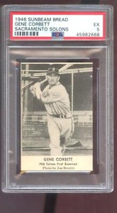- 1946 Sunbeam Bread Gene Corbett PSA 5 Graded Baseball Card Sacramento Solons PCLOpens in a new window or tabNew (Other)EUR 111.17konksplatt (30,743) 99.9%Buy It Now+EUR 17.65 shippingfrom United States