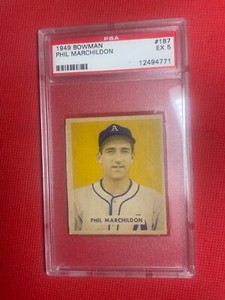 - 1949 Bowman Phil Marchildon #187 *Athletics* PSA 6 EX-MTOpens in a new window or tabNew (Other)EUR 129.73gmoney_inc (1,183) 99.9%or Best Offer+EUR 22.14 shippingfrom United States