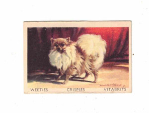 - Favourite Dogs Vintage 1949 Cereal Foods Weeties Trade Card - PomeranianOpens in a new window or tabPre-OwnedEUR 4.91Top Rated SellerTop Rated SellerBuy It Nowtheretailtherapystore01 (14,863) 100%Shipping not specifiedfrom Australia