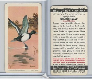- FC34-5 Brook Bond, Birds North America, 1962, #17 Greater ScaupOpens in a new window or tabEUR 1.81openbinders (66,281) 99.9%Buy It Now+EUR 3.63 shippingfrom United States