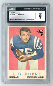 - 1959 Topps NFL Football Card #163 L.G. Dupre Baltimore Colts SGC 7 NMOpens in a new window or tabNew (Other)EUR 27.48erclem_69 (8,827) 99.6%Buy It Now+EUR 15.02 shippingfrom United StatesSponsored