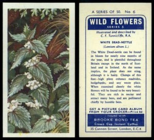 - Brooke Bond Tea Card Wild Flowers Series 3 1964 #6 White Dead Nettle (CC46)Opens in a new window or tabPre-OwnedEUR 3.08Top Rated SellerTop Rated SellerBuy It Nowsonicmack (26,235) 100%+EUR 2.47 shippingfrom AustraliaSponsored