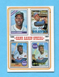 - New Listing1974 Topps #5 HANK AARON SPECIAL 1966 - 1969 HOF Atlanta Braves NRMT!!Opens in a new window or tabPre-OwnedEUR 6.28fr8 (616) 100%0 bids · Time left6d 15h left (Mon, 07:10 PM)EUR 9.31Buy It Now+EUR 15.43 shippingfrom United States