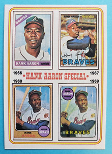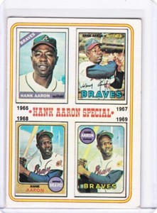 - New Listing1974 Topps #5 Hank Aaron Special 66-69 HOF Milwaukee Atlanta Braves MLB CardOpens in a new window or tabPre-OwnedEUR 6.51bangeloff79 (3,890) 99.7%+EUR 19.33 shippingfrom United States