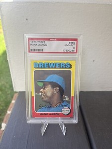 - 77109849 1975 Topps #660 Hank Aaron Milwaukee Brewers PSA 8 NM-MTOpens in a new window or tab~~ AMT MEMORABILIA ~~ NOW ACCEPTING CONSIGNMENTS!New (Other)EUR 46.50Top Rated SellerTop Rated Seller7 bids · Time left5d 18h left (Wed, 06:41 PM)amt_memorabilia (87,066) 99.9%+EUR 18.51 shippingfrom United States