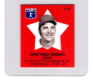- Johnny Bench Cincinnati Reds 1978 MLB Pepsi Baseball Superstar Card W/TabOpens in a new window or tabPre-OwnedEUR 14.01Top Rated SellerTop Rated Sellerhockeymonkey10 (69,279) 100%+EUR 20.17 shippingfrom United States