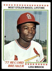 - New Listing1978 TOPPS - LOU BROCK - 77 RECORD BREAKER #1 - EX/NRMTOpens in a new window or tabPre-OwnedEUR 1.63mommom651 (1,003) 100%0 bids · Time left4d 15h left (Sat, 06:25 PM)+EUR 16.99 shippingfrom United States