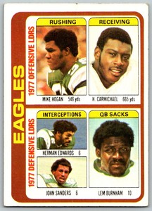 - 1978 Topps Mike Hogan/Harold Carmichael/Herman Edwards/John Sanders/Lem BurnhamOpens in a new window or tabPre-OwnedEUR 2.51vellasportscards (3,533) 99.9%Was: Previous PriceEUR 2.79 10% off+EUR 14.51 shippingfrom United StatesSponsored
