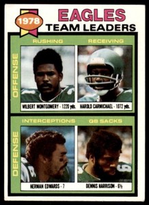 - 1979 TOPPS WILBERT MONTGOMERY/HAROLD CARMICHAEL/HERMAN EDWARDS/DENNIS HARRISONOpens in a new window or tabPre-OwnedEUR 2.56Top Rated SellerTop Rated Sellersportcardmktplace (9,449) 99.9%+EUR 14.51 shippingfrom United StatesSponsored