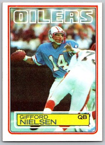- 1983 Topps #279 Gifford Nielsen Houston OilersOpens in a new window or tabPre-OwnedEUR 1.62socalguy1967 (2,794) 99.8%Buy It Now+EUR 14.42 shippingfrom United StatesSponsored