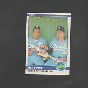 - 1984 Fleer Card #638 - George Brett / Gaylord Perry - Pine Tar Incident 7/24/83Opens in a new window or tabPre-OwnedEUR 4.59bigmac455 (1,753) 100%Buy It Now+EUR 14.38 shippingfrom United States