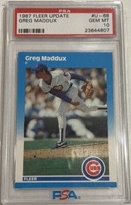 - New Listing1987 Fleer Update Greg Maddux #U-68 PSA 10 GEM MT Rookie RC HOF Cubs BravesOpens in a new window or tabNew (Other)EUR 116.34br-321264 (750) 100%+EUR 23.13 shippingfrom United States