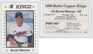 - 1990 Butte Copper Kings Sports Pro #16 Keith Murray Mobile Alabama Baseball CardOpens in a new window or tabEUR 12.13mcvikes (19,885) 100%+EUR 19.51 shippingfrom United States