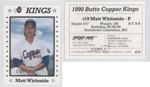 - 1990 Butte Copper Kings Sports Pro 29 Matt Whiteside Charleston Missouri MO CardOpens in a new window or tabEUR 12.13mcvikes (19,885) 100%+EUR 19.51 shippingfrom United States