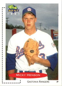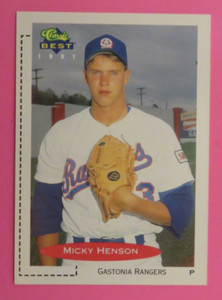 - 1991 Classic Best Micky Henson 22 Minor League Gastonia Rangers MLB Texas RangerOpens in a new window or tabPre-OwnedEUR 1.77tcali2011 (1,306) 100%+EUR 15.58 shippingfrom United StatesFree returns