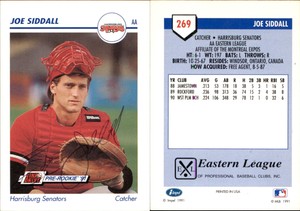 - Joe Siddall 1991 Line Drive #269 Harrisburg Senators TTM/IP Signed AutographedOpens in a new window or tabPre-OwnedEUR 18.49cartescards (9,072) 100%or Best Offer+EUR 16.08 shippingfrom United StatesSponsored