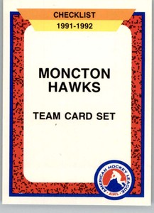- 1991/1992 Pro Cards AHL Moncton Hawks Team Set Of 25 CardsOpens in a new window or tabBrand NewEUR 9.10puckman33 (7,427) 100%Buy It Now+EUR 18.04 shippingfrom United States