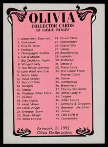 - 1992 Olivia DeBerardinis 1 Art Complete Trading Card Set 1-90 from Comic ImagesOpens in a new window or tabPre-OwnedEUR 20.47rnk251 (656) 100%Was: Previous PriceEUR 23.53 13% off+EUR 21.14 shippingfrom United States